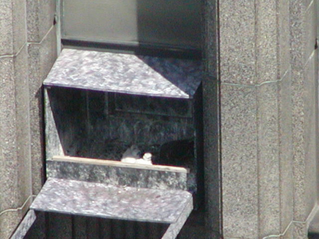 P.S. Nothing happening at the Whittier site - yet. The pair, Sunrise and Allegro are still present and sitting at/near the "usual" eyrie (12th floor south face/east section window-well).