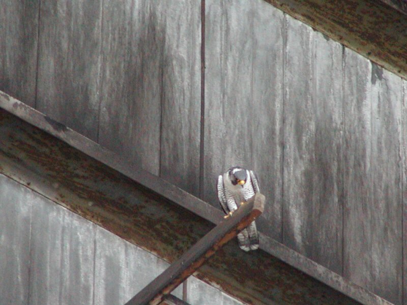 Monroe Site, August 12th & 13th: This was the first time I had a chance to see the entire body of the female at the plant since June 3rd 2004! The bird that has been inside the nest I-beam observed July 16th is a new adult female! (Monroe was last seen June 3rd 2004)