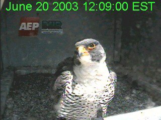 Pop and Judy's great-grand-sons (Wilbur and Orville) were fledged in Dayton Ohio 2003. Orville has just appeared at the Rhodes Tower in Columbus, OH.